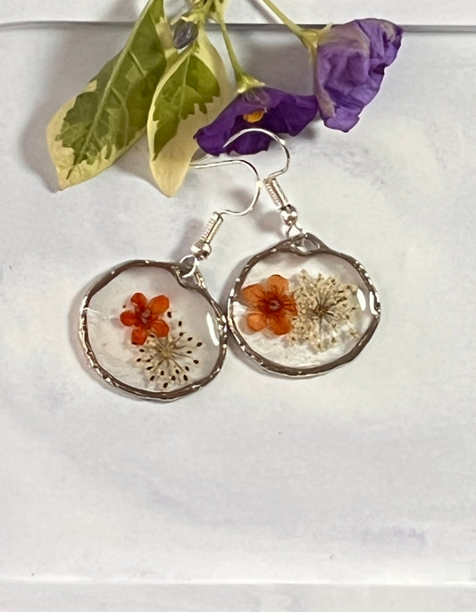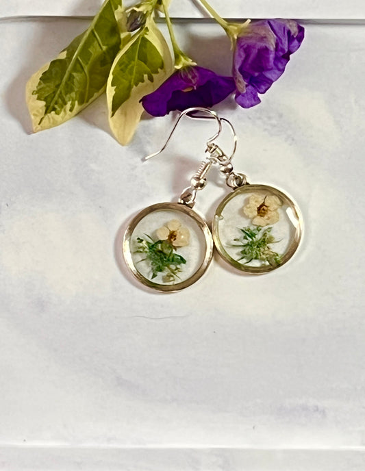 Green Lace Fynbos and white flower Round Resin Jewellery