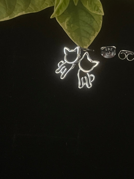 925 Sterling Silver love Kitty stud Earrings