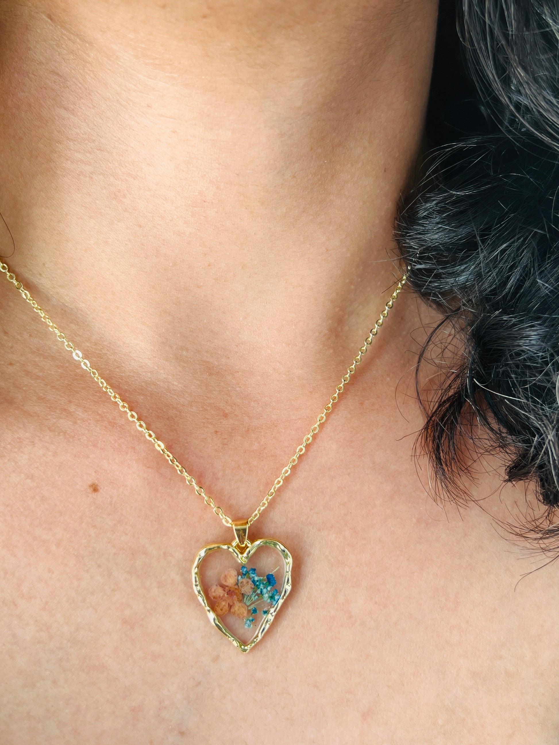 Our pendants are hand crafted and the flowers are real, so each pendant will be unique and may look slightly different from this picture.