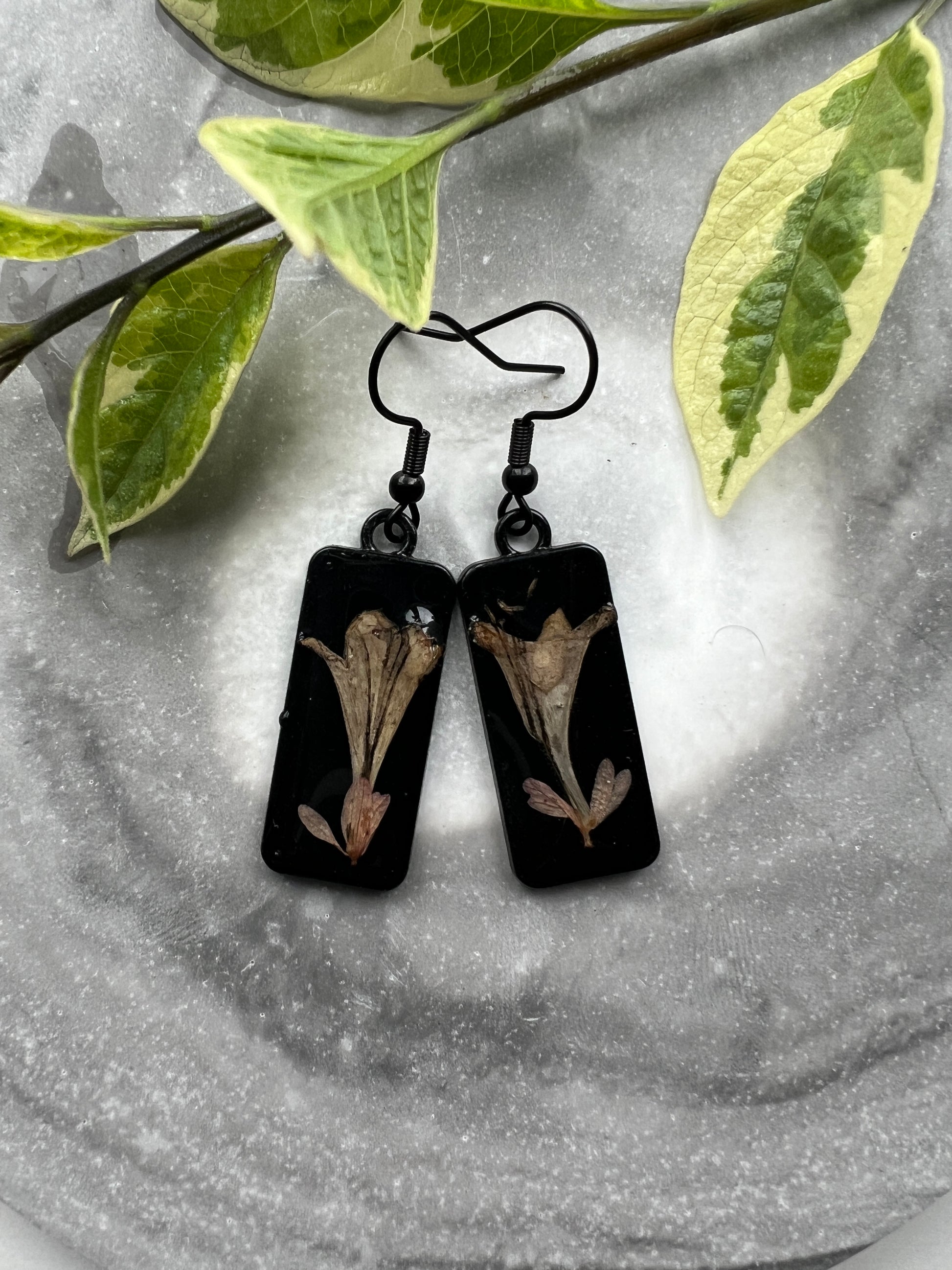 Fynbos in Black Rectangle Resin Earrings