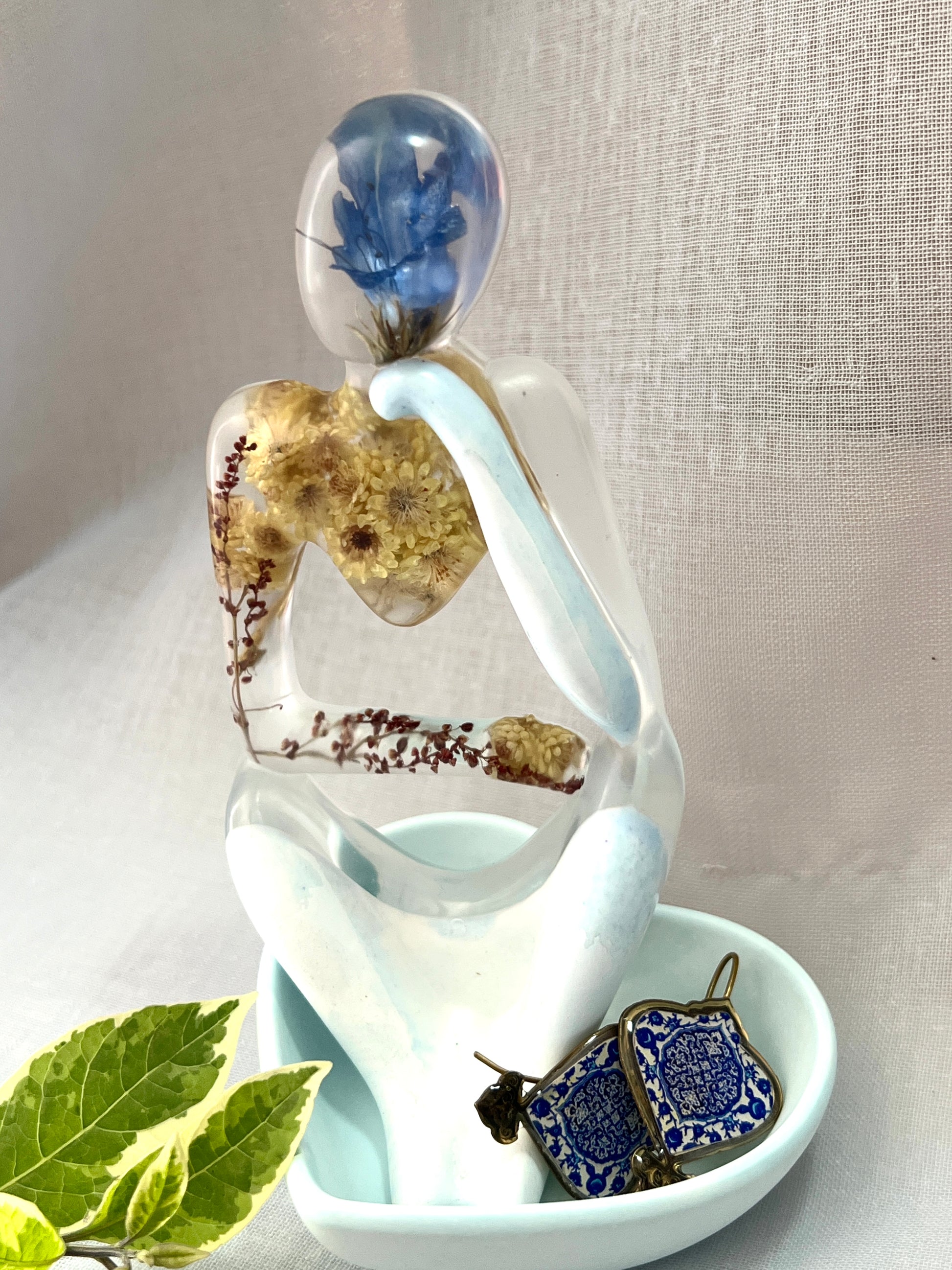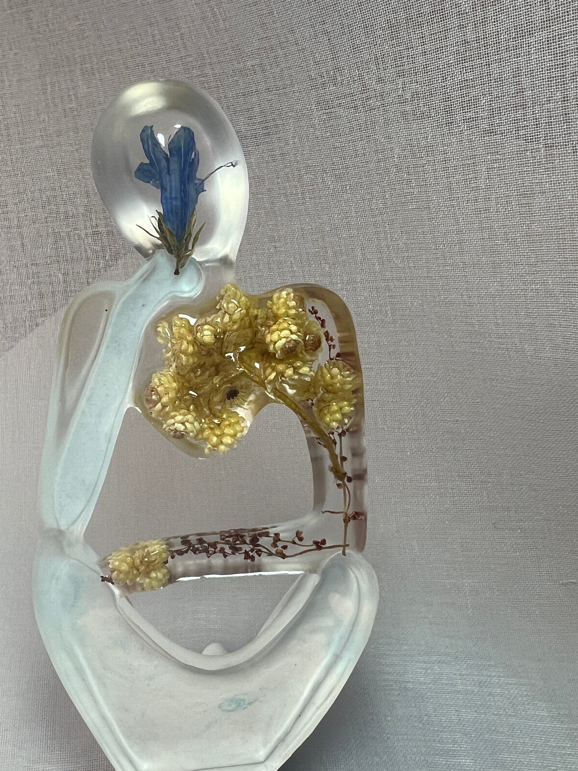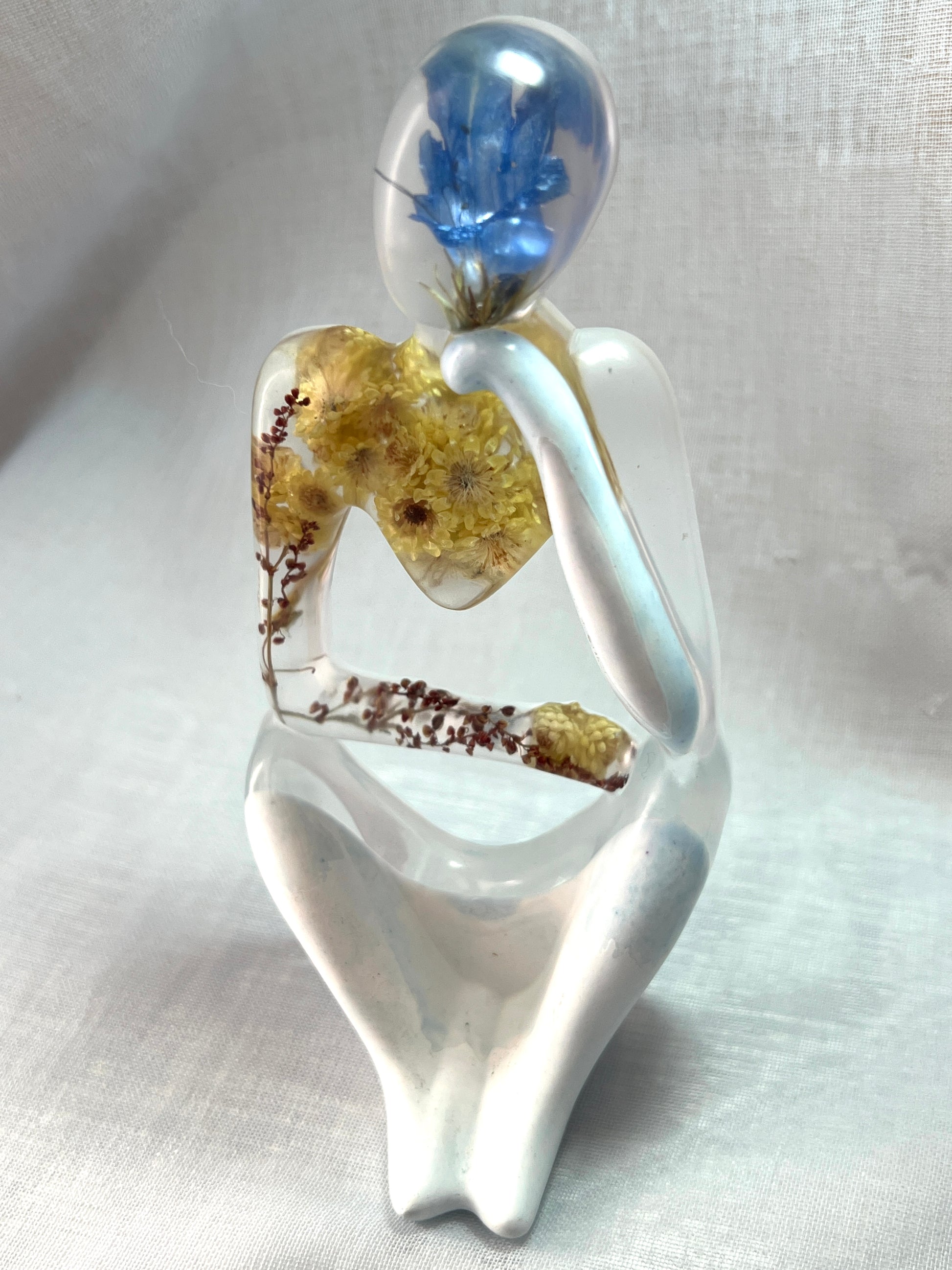 Introducing the Fynbos Thinker--a unique art piece that blends hand craftsmanship with a mix of mediums. This piece is encased with natural dried fynbos, creating a one-of-a-kind, captivating masterpiece. From the thoughtful design to the intricate detail, this art piece will be sure to spark conversation and admiration!