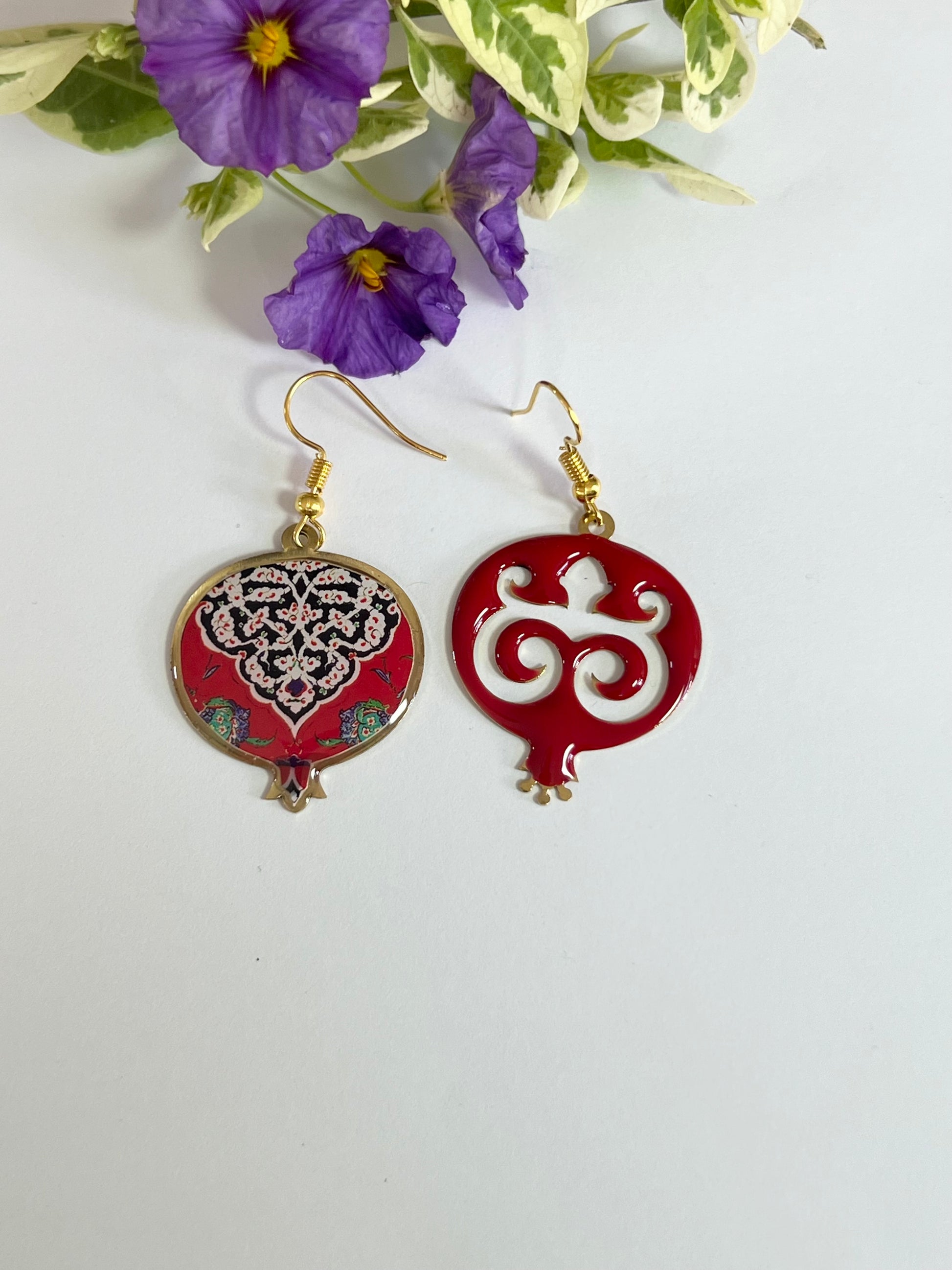 Red Mismatched Pomegranate Earrings